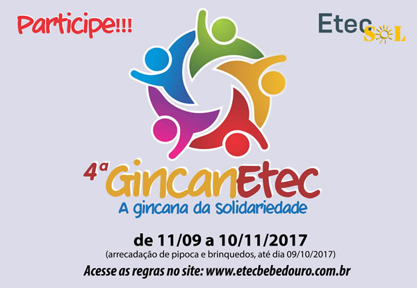 A GINCANETEC acontece de 11/09 a 10/11/2017 (arrecadação de pipoca e brinquedos, valem somente, até dia 09/10/2017).