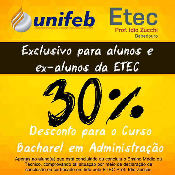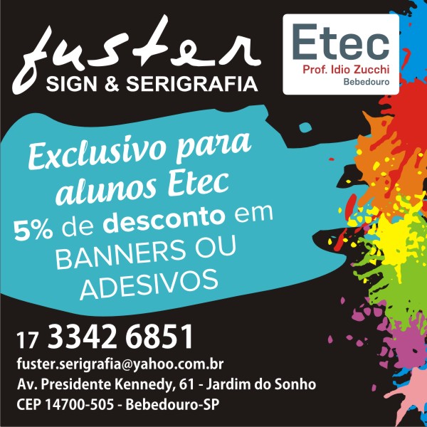 Descontos nos serviços e/ou produtos para alunos, professores e funcionários da Etec Prof. Idio Zucchi de Bebedouro/SP.
