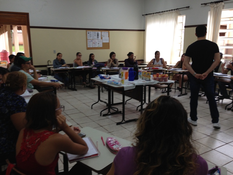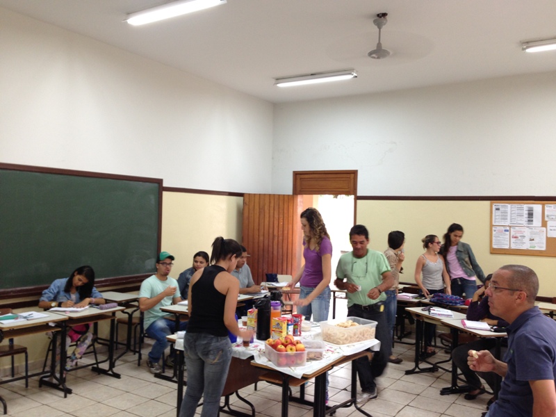 No primeiro sábado letivo, dia 28 de fevereiro, a professora Vanessa Pugliere fez os alunos colocarem a “mão na massa” em uma atividade prática de Inglês. Foi feita uma conversação que terminou com eles preparando uma salada de frutas, induzindo o vocabulário cotidiano do idioma.