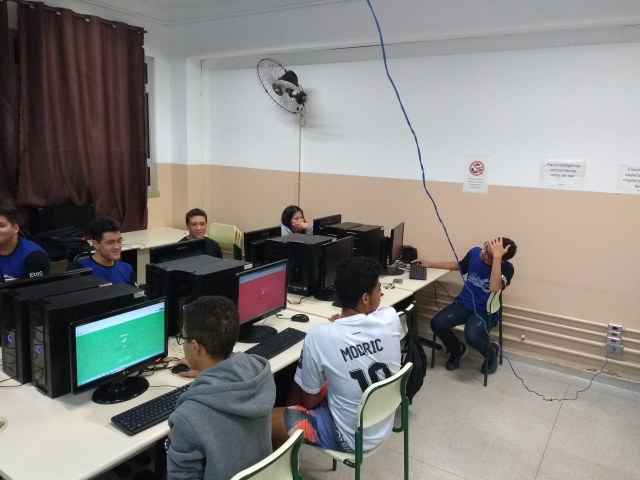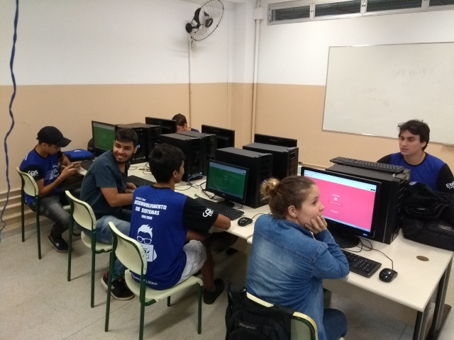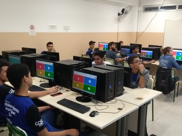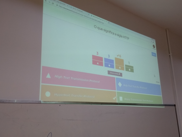 Em uma das nossas aulas utilizei o modelo de Gamificação, onde foi feito algumas perguntas do conteúdo apresentado em sala de aula em um formato mais amigável para os alunos, nessa atividade as perguntas eram apresentadas no telão da sala e os discentes tinha um tempo para responder em seus computadores ou no seu celular, no final de cada pergunta o sistema exibia a classificação.