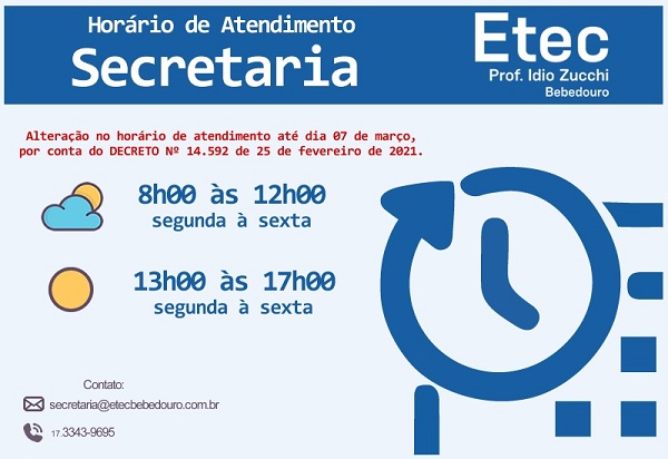Atenção! Alteração no horário de atendimento.DECRETO MUNICIPAL Nº 14.592 DE 25 DE FEVEREIRO DE 2021.