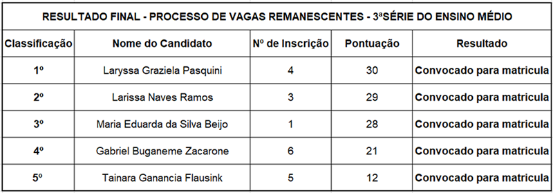 Informamos que todos os candidatos foram aprovados no processo de seleção para 3ª Série do Ensino Médio.