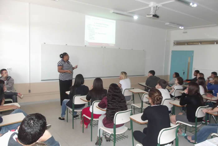Em sua fala a Orientadora Educacional, Prof. Sandra Regina Moisés da Silva, trabalhou com alunos como estudar em casa, num processo do desenvolvimento da autonomia da aprendizagem pontuando vários temas: Como não estudar; Estudo X Revisão; Como estudar; Método das 4 Etapas; Ambiente de Estudo; Família e Amigos; Estudar com Amigos. Salientou a todo o momento a importância de ter um método de estudo.