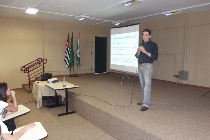 Aconteceram mini palestras em nosso auditório onde cada profissional explanou sobre sua profissão e formação destacando pontos como mercado de trabalho, funções que desempenham, dificuldades, disciplinas da universidade, entre outras coisas. No final de cada mini palestra foi deixado um tempo para interação entre palestrante e alunos onde esses podiam fazer questionamentos tirando suas dúvidas. As profissões abordadas foram Zootecnia - Rodrigo Longuine, Medicina - Dr. Eurico Medeiros Junior, Engenharia Civil - Nasser José Delgado Abdalla, Advogado - Rogério Lemos Valverde, Jornalismo - Patricia Pietro Conde, Psicologia - Sonia Maria Praisler Pian, Docência – Lucas Cruz, Analista de sistemas - André Macedo e Administração - Matheus Domingues.