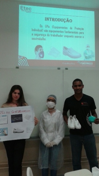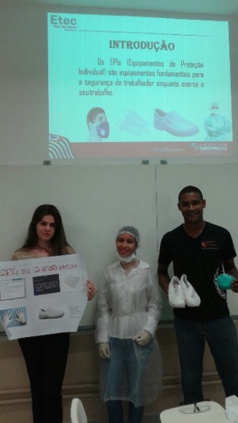 Como podemos constatar nas fotos, os alunos não mediram esforços, na pesquisa, elaboração de trabalhado e para demonstrar na prática os EPIs obrigatórios de cada profissional.