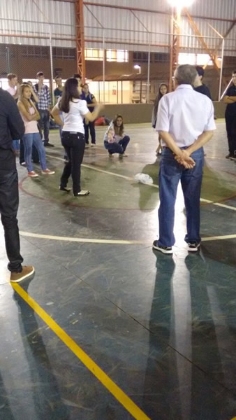 Após o intervalo os alunos se reuniram na quadra da escola para participar de uma dinâmica. A atividade chamada de "O lobo e os cordeiros" consiste na escolha secreta de um dos alunos para que seja o lobo. Sem que os demais alunos saibam quem foi escolhido, eles devem acusar uns aos outros, com base na percepção do comportamento de cada um, a fim de descobrir quem é o lodo entre os cordeiros. O aluno que acusa deve convencer os demais de que o acusado é o lobo, seguido de uma votação a favor daquele que melhor argumentar. Cada aluno que perde na votação se retira do grupo, até que o lobo seja descoberto. Os alunos contaram ainda com a premiação em balas para incentivá-los nos debates.