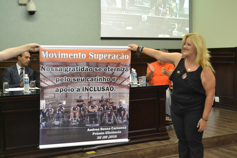 A premiação aconteceu durante a 25ª Semana de Prevenção às Deficiências, e é concedida pelo Poder Legislativo e pelo Conselho Municipal para Assuntos da Pessoa com Deficiência de Bebedouro. Além do prêmio Andrea recebeu presentes dos membros Movimento Superação e do MSB Quad Rugby, em agradecimento ao apoio que ela dá ao grupo e que tem sido de grande importância para o desenvolvimento das suas atividades.