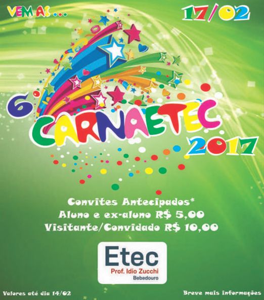 Vem ai o Tradicional Evento de Carnaval da Etec de Bebedouro... fiquem ligados Logo teremos muitas novidades!!