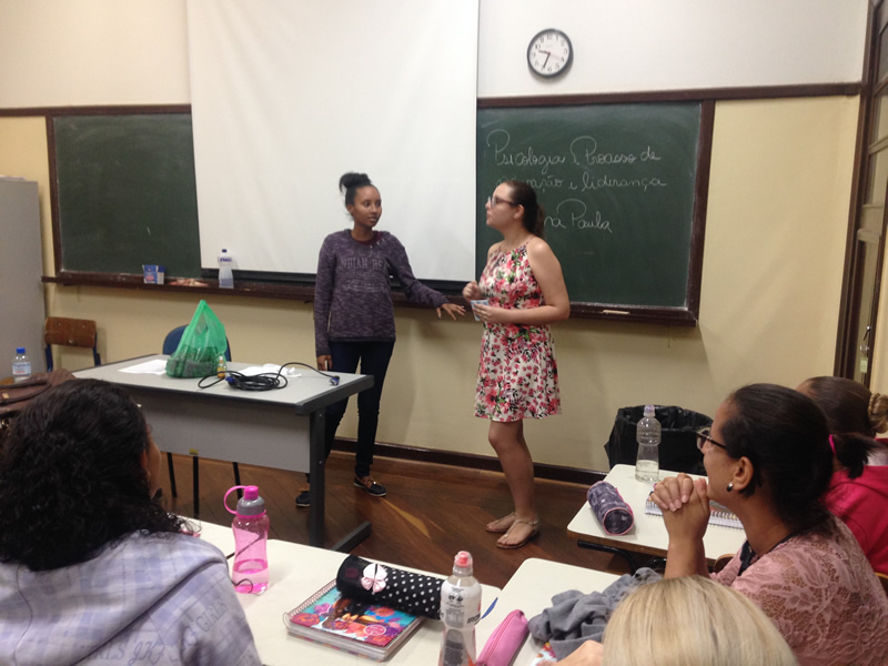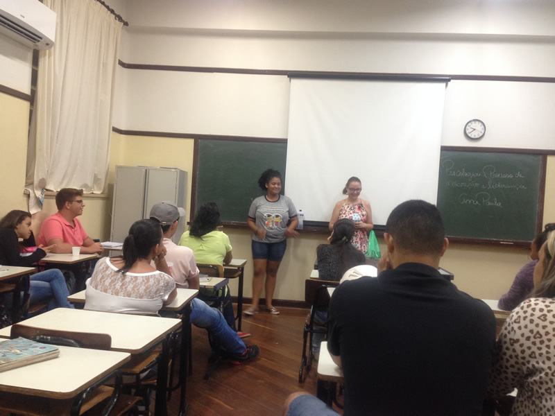 Orientados pela professora Ana Paula, da disciplina Psicologia e Processo de Motivação e Liderança, eles fizeram a “Dinâmica Caixa Surpresa”, que teve o objetivo de proporcionar integração e autoconhecimento. Os alunos foram convidados a abrir uma caixa onde encontrariam uma foto de uma figura muito importante e após observarem a figura falar uma qualidade e uma dificuldade desta pessoa. Na caixa eles encontravam um espelho e depois que todos falaram suas qualidades e dificuldades a professora os convidou a refletir, mostrando quanto todos eram parecidos, que tinham seus pontos fortes e fracos e que estes se repetiam em muitos deles.