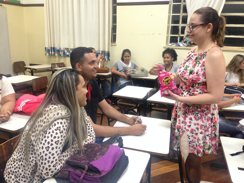 A atividade foi finalizada com todos os alunos recebendo um bombom.