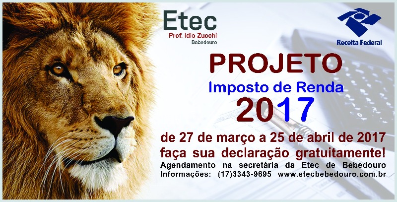 Alunos dos cursos da área de gestão e negócios da Etec passarão por treinamento (dia 21/03) com o prof. Eduardo Soares da Hora, para realizarem juntamente com o professor o projeto de declaração de imposto de renda 2017 para a comunidade.