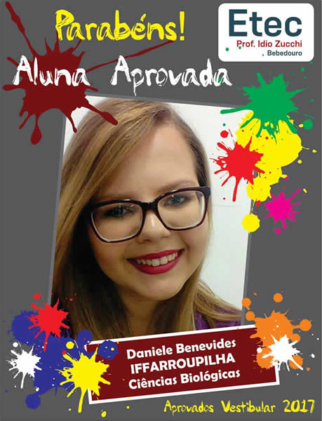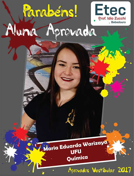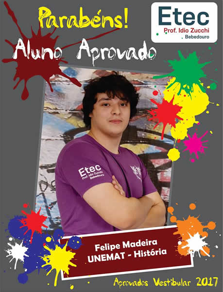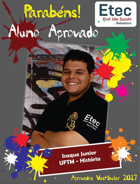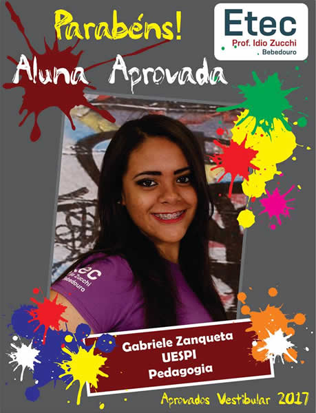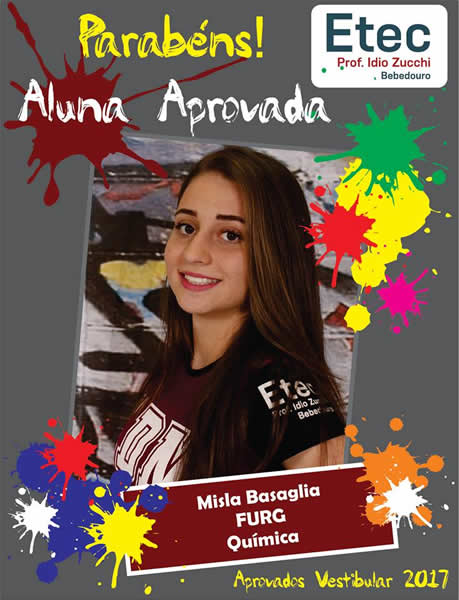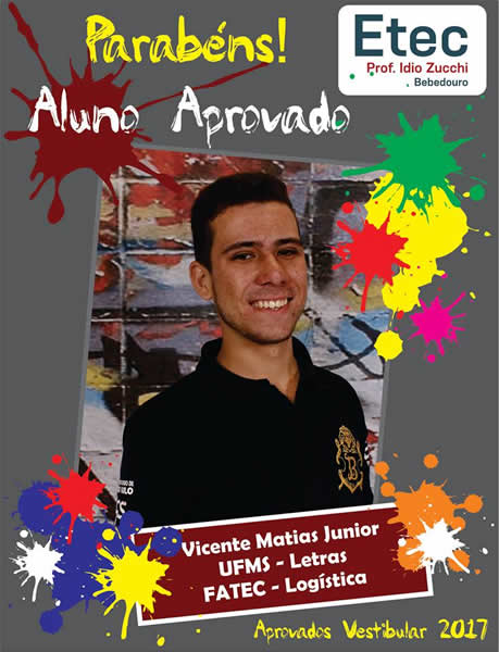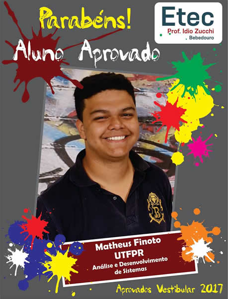 Mais uma vez o corpo docente e direção da Etec Professor Idio Zucchi comemoram os resultados positivos dos seus alunos obtidos nos vestibulares. São 61 aprovações em universidades públicas, mais de 120 aprovações em universidades particulares, onze bolsas integrais e 14 aprovações de alunos treineiros.