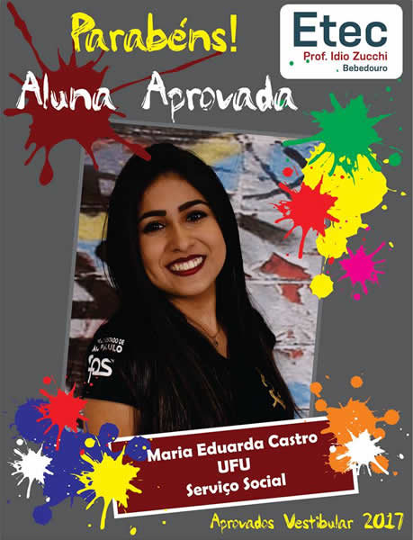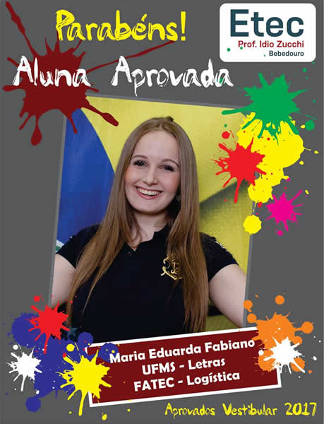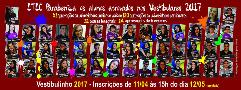 Longe de casa – com as aprovações nas universidades públicas os agora “ex-etecanos” continuarão seus estudos em várias partes do país. Foram vários os aprovados na USP (Universidade de São Paulo), Unesp (Universidade Estadual Paulista), Unicamp (Universidade Estadual de Campinas), UFRJ (Universidade Federal do Rio de Janeiro), UFU (Universidade Federal de Uberlândia), UEL (Universidade Estadual de Londrina), IFSP (Instituto Federal de São Paulo), entre outras importantes universidades.
