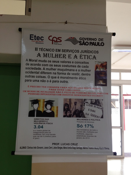 Os alunos dos cursos técnico em Recursos Humanos, Serviços Jurídico e Informática para Internet foram convidados, dentro da disciplina ECO (Ética e Cidadania Organizacional), a fazer algumas reflexões no mês de março sobre a Mulher e a Ética em nossos dias.