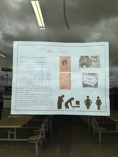 Foram feitas pesquisas, discussões e rodas de conversa sobre o assunto. Ao final do processo os alunos foram desafiados a expor suas ideias sobre o tema na forma de um cartaz. Os trabalhos estão em exposição na escola, uma forma de levar o tema para toda a comunidade escolar e gerar novas reflexões.