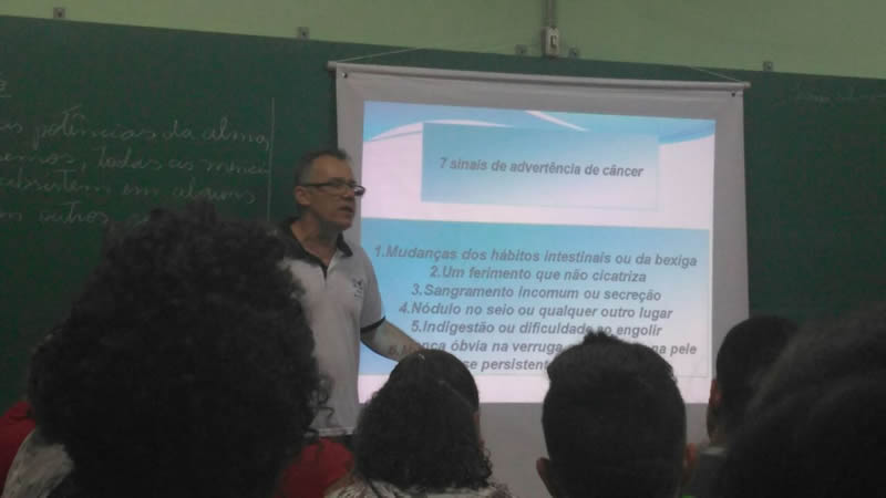 A palestra contou com a participação de alunos dos cursos de Administração e Serviços Jurídicos e foi discutido assuntos referente a identificação e prevenção do câncer, os alunos gostaram muito das explicações do Prof. José Renato e puderam ver através de instrumentos próprios como fazer o autoexame e assim se prevenir contra várias doenças.