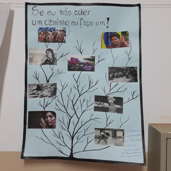 Foram feitas pesquisas, discussões e rodas de conversa sobre o assunto. Ao final do processo os alunos foram desafiados a expor suas ideias sobre o tema na forma de cartaz que será exposto para toda a comunidade escolar na tentativa de gerar novas reflexões e assim todos que frequentam a escola podem fazer suas próprias reflexões.