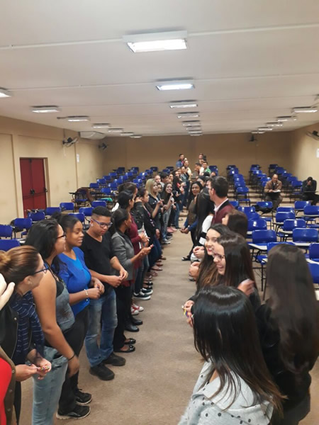 Os novos alunos do curso de Técnico em Serviços Jurídicos de Bebedouro tiveram uma calorosa acolhida dos professores e colegas mais velhos de curso.