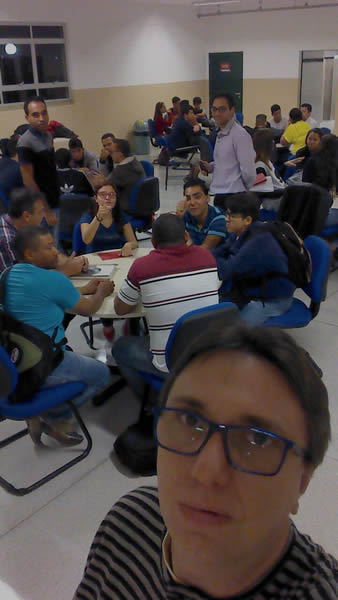 Esta foi uma das ações de recepção aos alunos integrantes. Na oportunidade houve vários bate-papos com ex-alunos, alunos e profissionais da área de cursos também do Eixo de Informação e Comunicação (Técnico em Informática e Técnico em Informática para Internet).