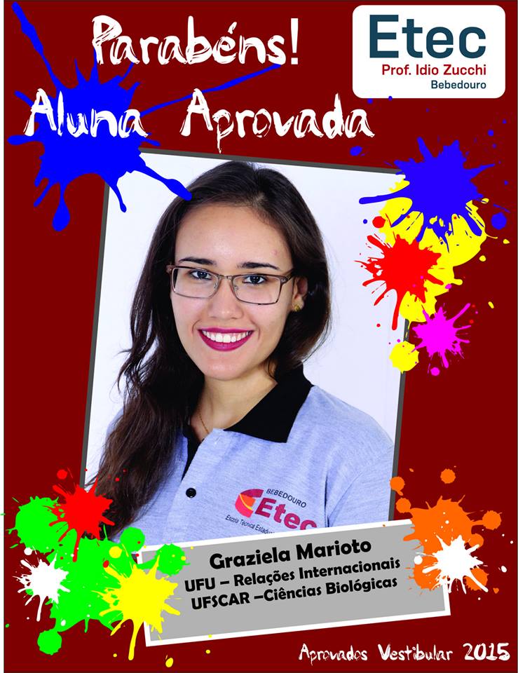 Novamente a qualidade do ensino da Etec Prof. Idio Zucchi pode ser comprovada. Depois de destacar-se como a escola pública de Bebedouro com o melhor resultado no Saresp e Enem, direção e corpo docente comemoram as 102 aprovações em vestibulares de diversas faculdades e universidades do país. Foram 24 aprovações em universidades públicas. Somando-se a esse resultado 14 aprovações de treineiros, ou seja, alunos que ainda estão na 2ª série do Ensino Médio, sendo 8 delas em universidades públicas.