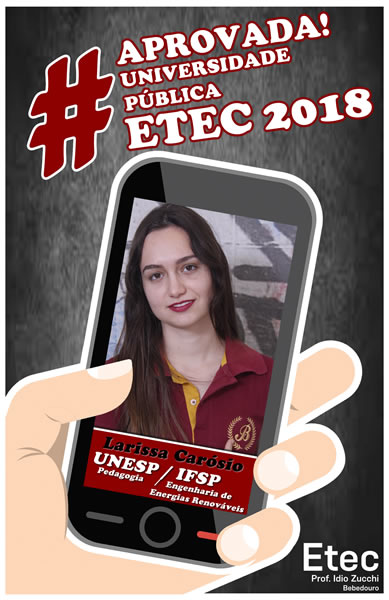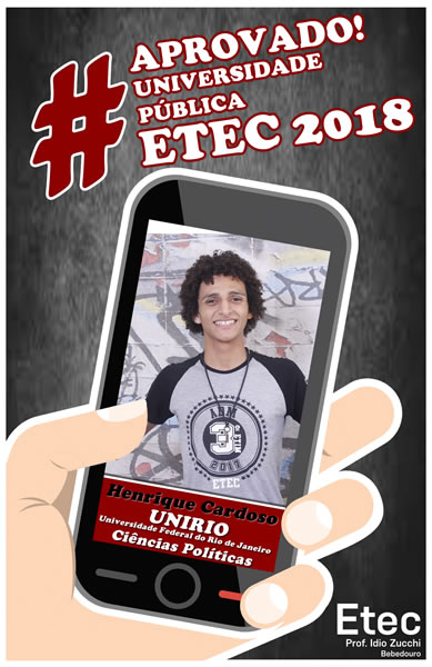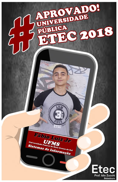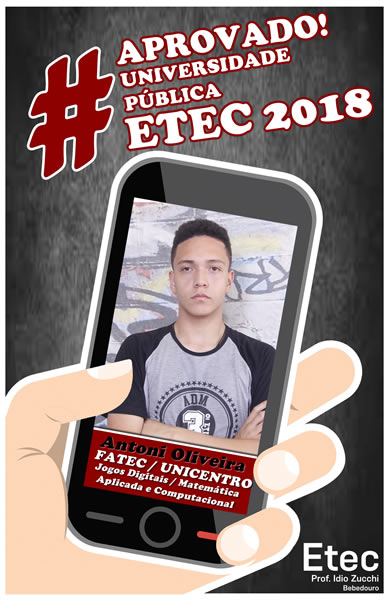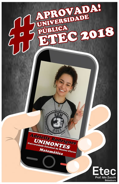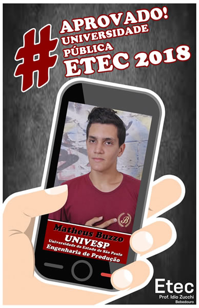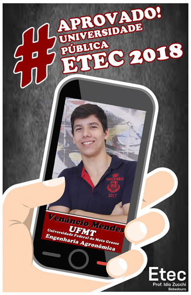 Mais uma vez o corpo docente e direção da Etec Professor Idio Zucchi comemoram os resultados positivos dos seus alunos obtidos nos vestibulares 2018. Os alunos presentaram um bom desempenho nos vestibulares, de acordo com levantamento realizado junto aos 114 alunos concluintes em 2017, 39 conseguiram 52 aprovações em universidades públicas e 71 alunos conquistaram 127 aprovações em universidades particulares, sendo quatro com bolsas integrais.