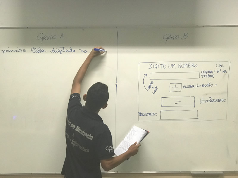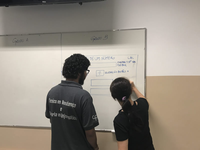 Durante a aula de programação de computadores no curso Manutenção e Suporte em Informática, na data de 28/03 foi solicitado a turma que fosse construído dois grupos (duas equipes de desenvolvimento) onde foi passado uma solicitação de uma calculadora que realizasse todas as operações e calculando a quantidade de números que o usuário quisesse.
