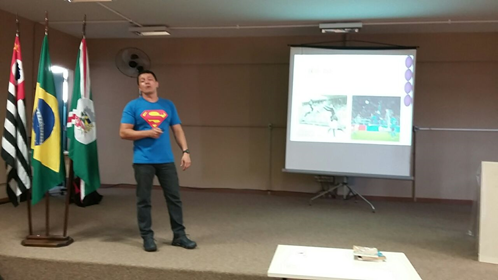 Para aqueles que não quiseram participar ou assistir algum dos campeonatos houve a opção de participar de uma palestra no auditório com o Prof. José Roberto de Almeida, o Pepe, cujo tema era “Futebol – história, geografia e linguística” onde se falou sobre futebol e sua história desde como tudo começou até os maiores jogadores e a origem da palavra.