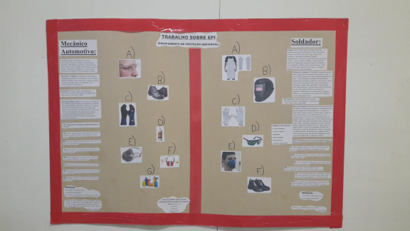 Sob a orientação do Professor Mestre e Doutorando Thiago Tavares, os alunos realizaram o levantamento dos tipos de EPI, atividades desenvolvidas, riscos e peculiaridades das profissões de: açougueiro, cozinheiro industrial, pedreiro, trabalhadores da construção civil, eletricista, enfermeiro, pintor, mecânico, vigilante, trabalhador rural com pulverização, colhedor de laranja, policial militar, bombeiro civil e militar, e trabalhadores de câmera fria.