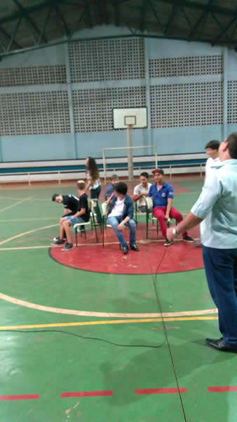 A gincana consistia em brincadeiras como dança das cadeiras, descubra a música e descubra a palavra. Além das brincadeiras alguns alunos puderam mostrar seus talentos com cantando músicas.