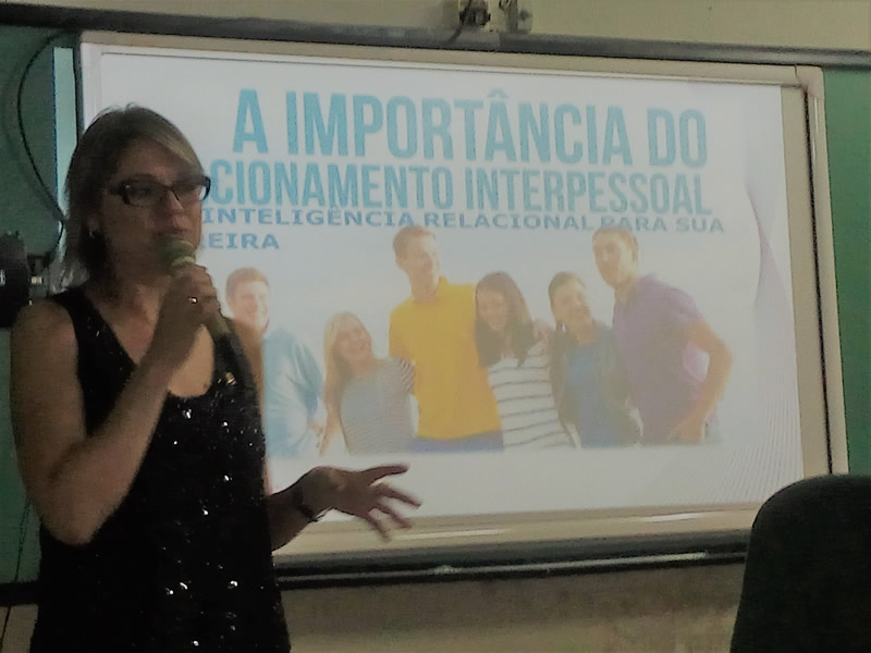 E por fim, no dia 28 de setembro, fechou o mês com a profissional especialista em Recursos Humanos e Coach de Carreira e recolocação e Mentora profissional Ana Paula Dias. Em seus 20 anos de experiência na área administrativa e RH os presenteou com o tema “A importância do relacionamento interpessoal e da inteligência relacional para sua carreira”. Ana Paula dividiu com os alunos suas experiências de vida profissional e pessoal, relatando a utilização da resiliência para o alcance de seus objetivos. Tratou de forma dialogada e prática a importância da empatia no ambiente de trabalho, o respeito a diferenças e o saber se comunicar de forma clara e com limites em determinados ambientes.