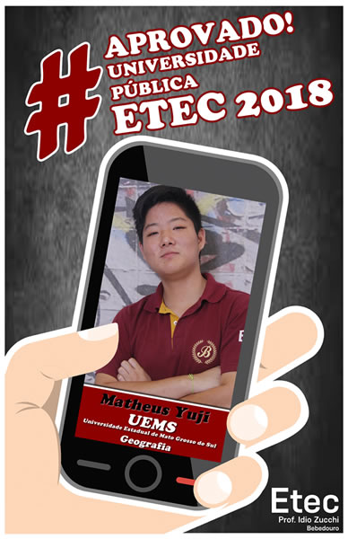 Mais uma vez o corpo docente e direção da Etec Professor Idio Zucchi comemoram os resultados positivos dos seus alunos obtidos nos vestibulares 2018. Os alunos presentaram um bom desempenho nos vestibulares, de acordo com levantamento realizado junto aos 114 alunos concluintes em 2017, 39 conseguiram 52 aprovações em universidades públicas e 71 alunos conquistaram 127 aprovações em universidades particulares, sendo quatro com bolsas integrais.